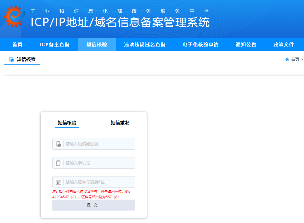 注意:手機號與主體負責人、網(wǎng)站負責人必須對應一致,否則將導致驗證失效。